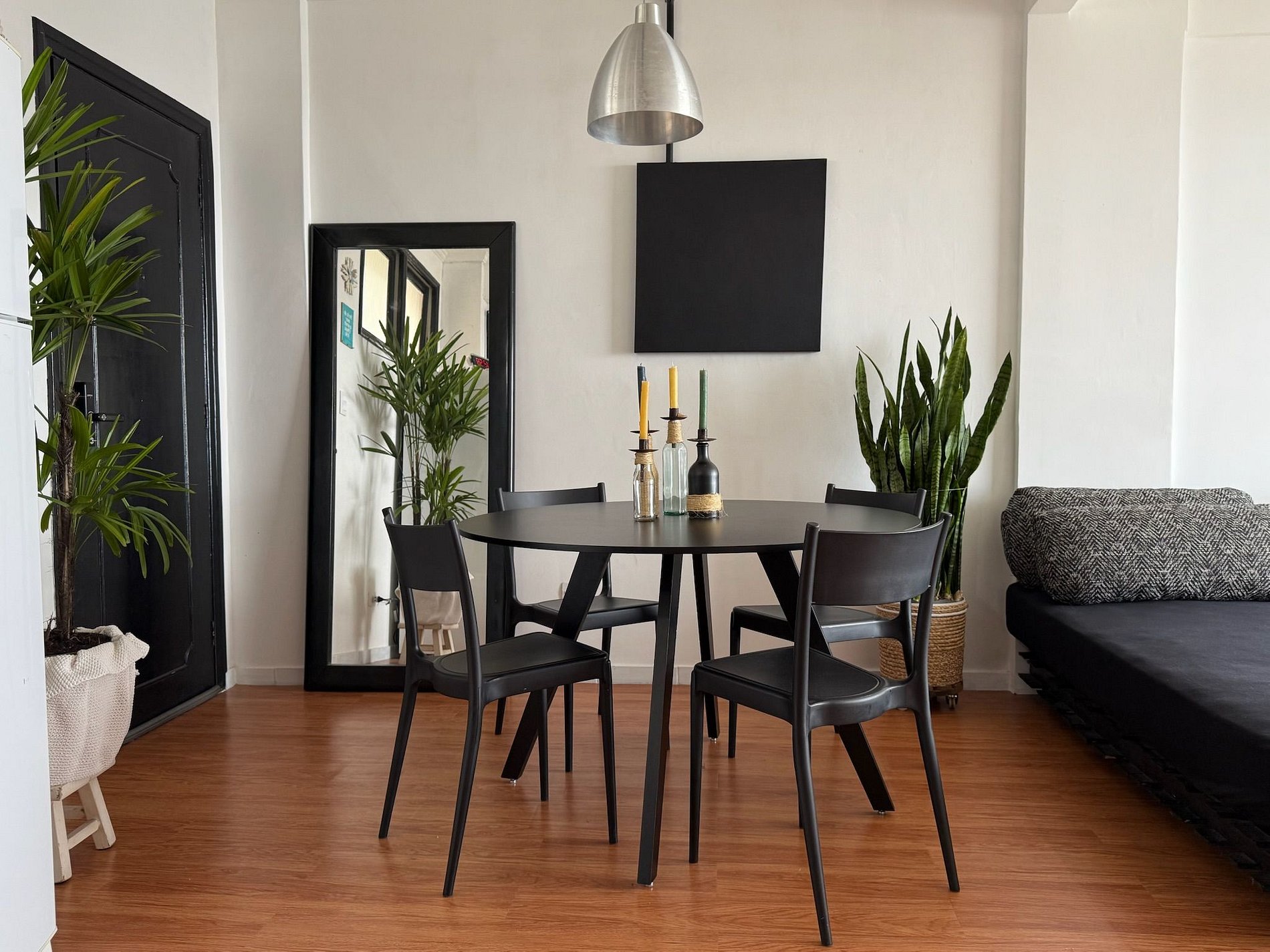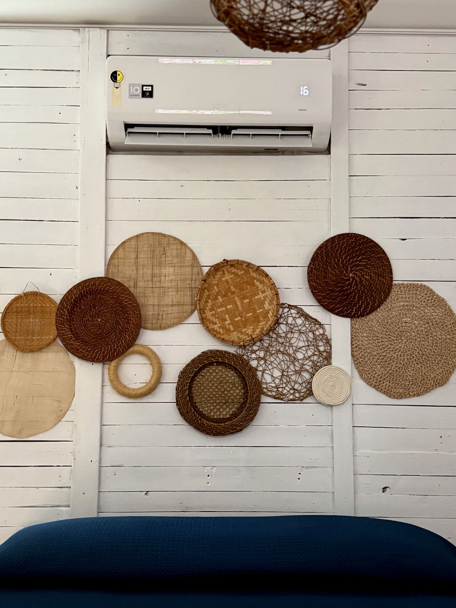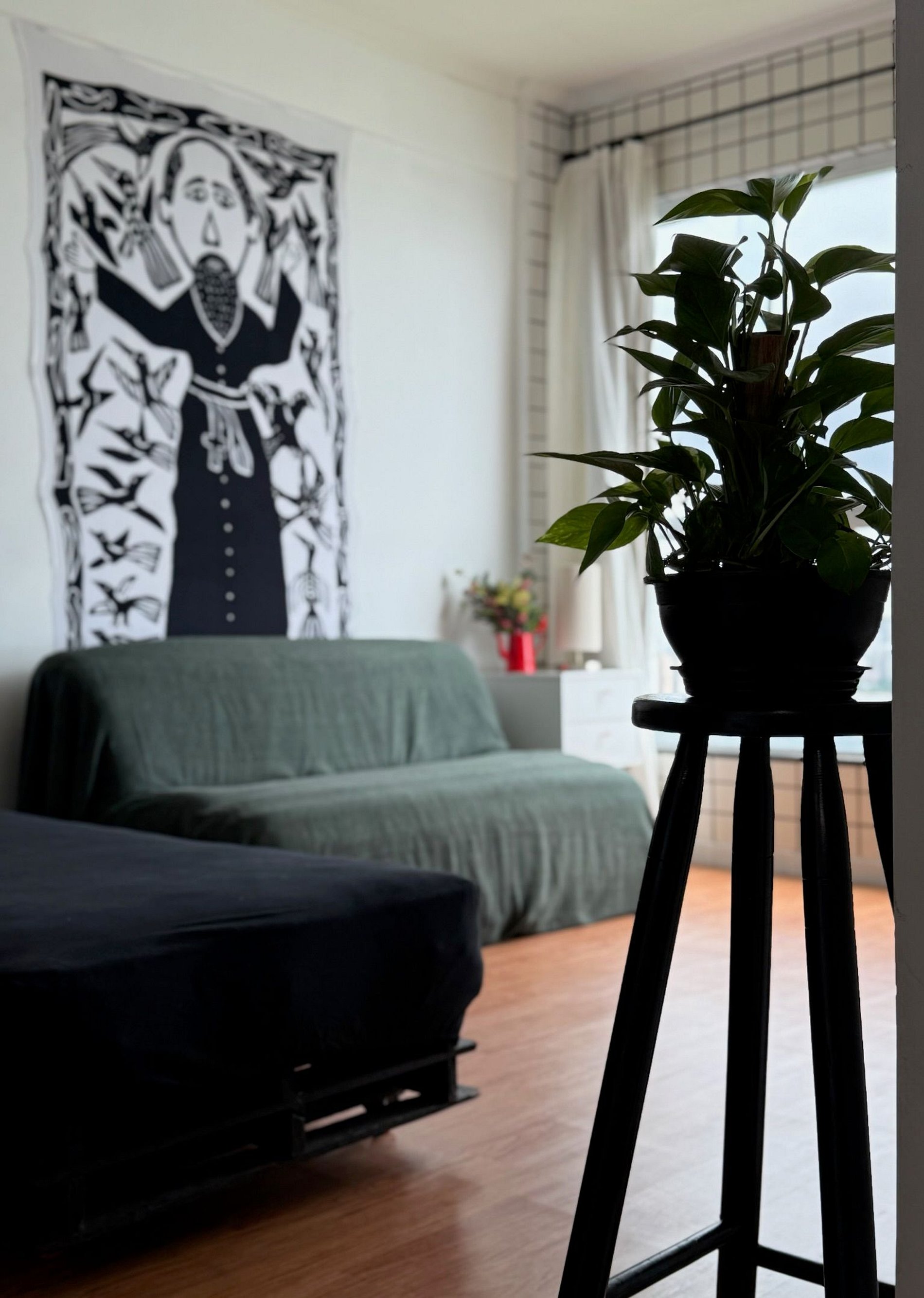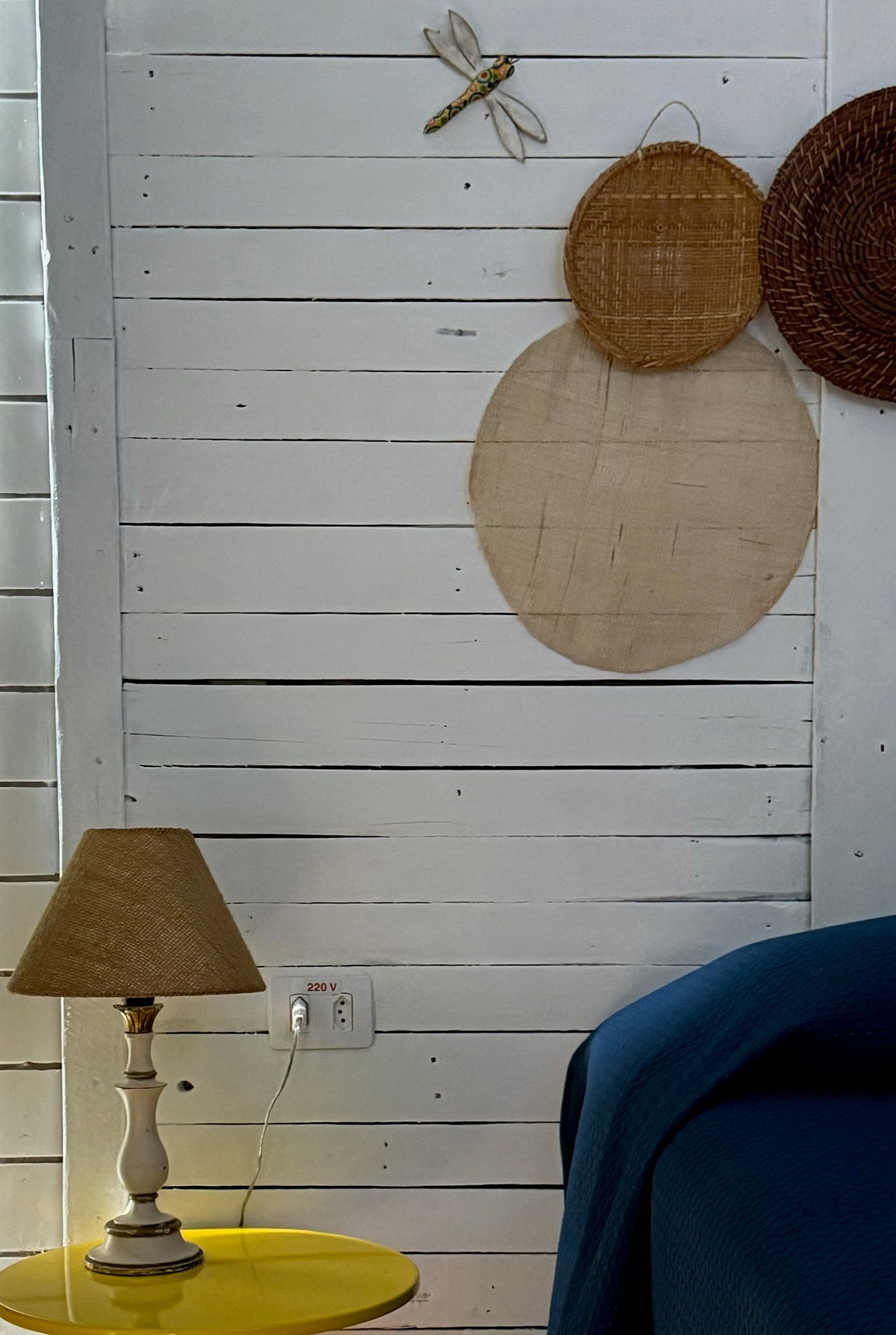 Quarto estilo rústico/industrial ensolarado e arejado, com vista para o mar. Aproveite a cama confortável e o escurinho que o blackout proporciona, se preferir dormir até tarde ou descansar após um dia na praia.