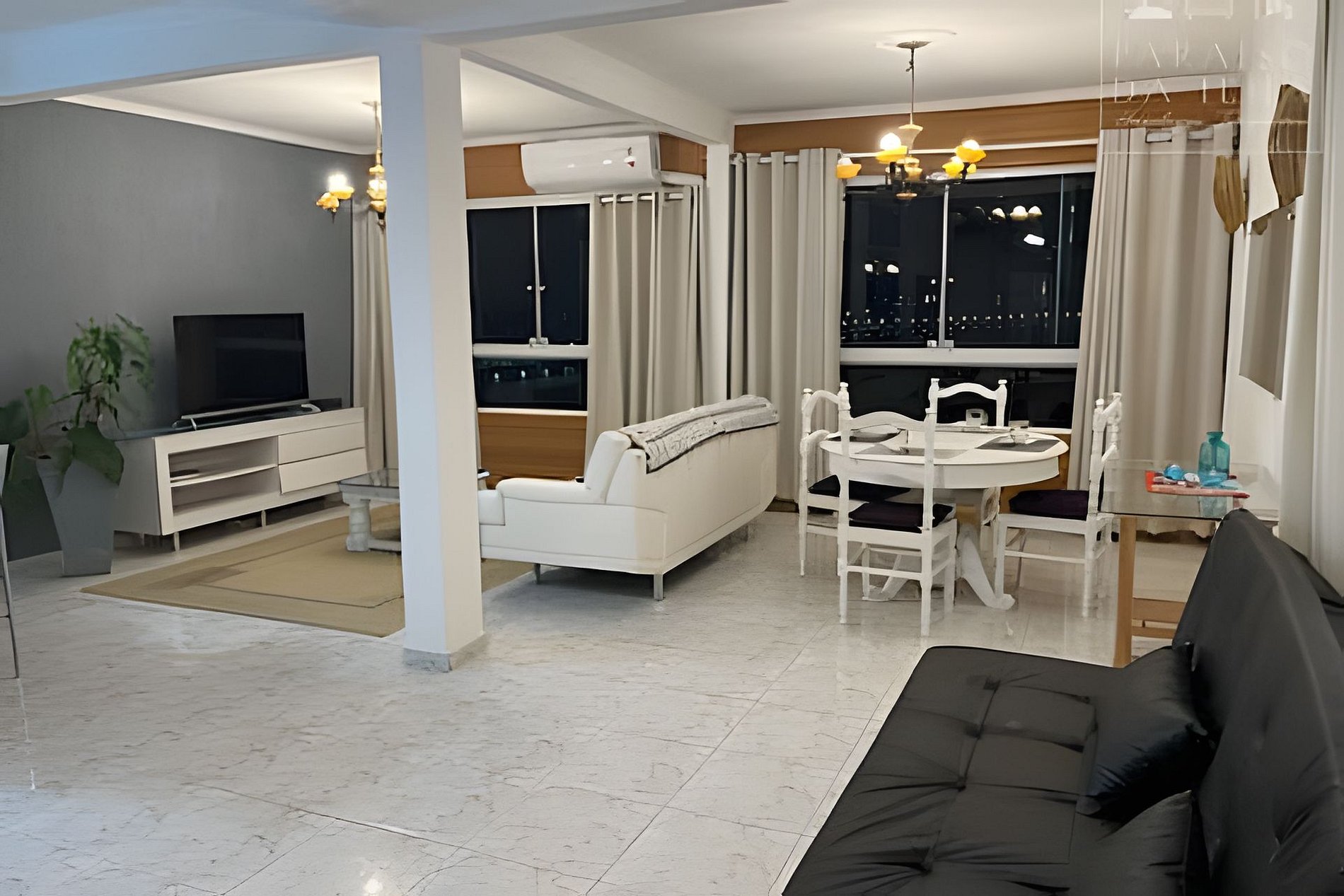 Apartamento completo, com uma sala IMENSA e um Ar Condicionado potente, cozinha americana de onde você tem a vista do OCEANO e pode interagir com as pessoas que estarão hospedadas com você neste Lugar Incrível ! Quarto completo, com TV e Ar Condicionado, Banheiro com Banheira Relaxante, Lavabo, Mesa de Jantar e tudo isto com vista panorâmica e incrível do Mar. Além disso, fornecemos enxoval completo (Travesseiros, Lençóis, Toalhas e Mantas) para seu maior conforto. Venha SE ENCANTAR com este Lugar Único !
