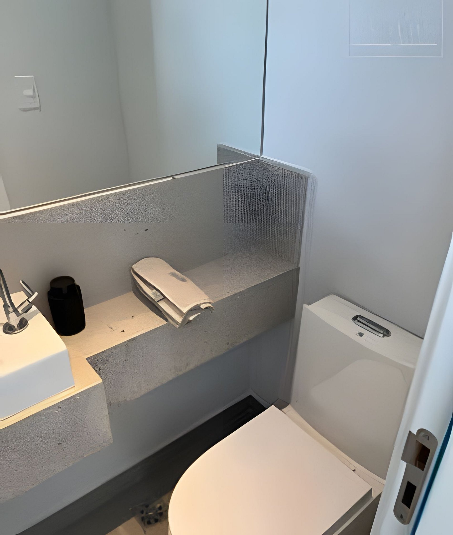 No piso Inferior estão as áreas íntimas, compostas de uma Suíte para Casal, um segundo quarto para Casal e um terceiro quarto de solteiro com bancada para Home Office. Além de uma Sala de TV e banheiro social.