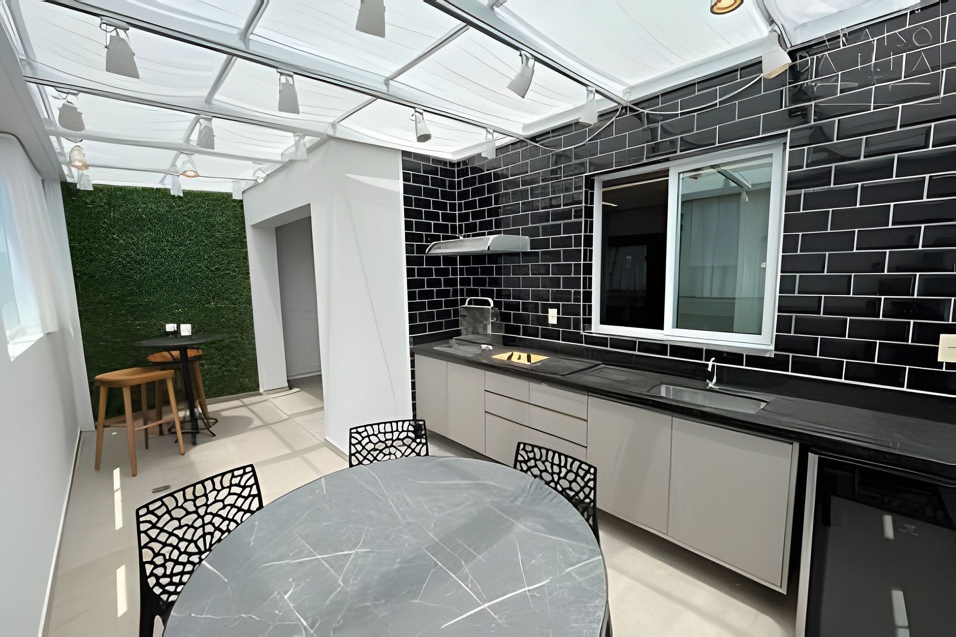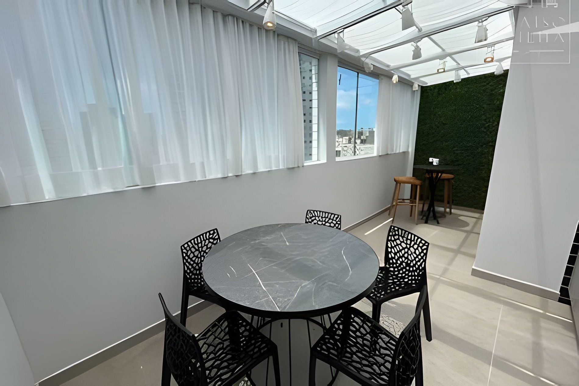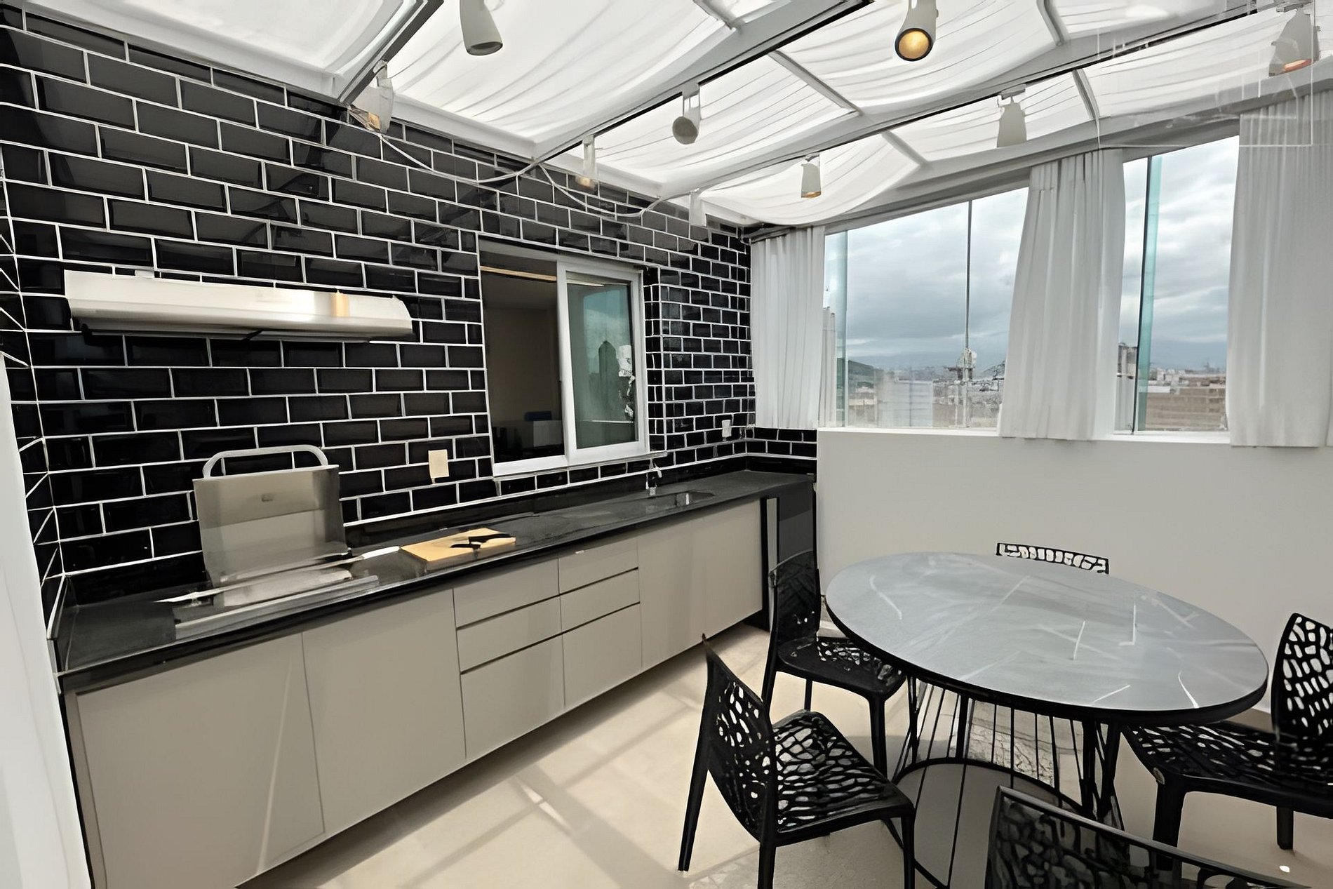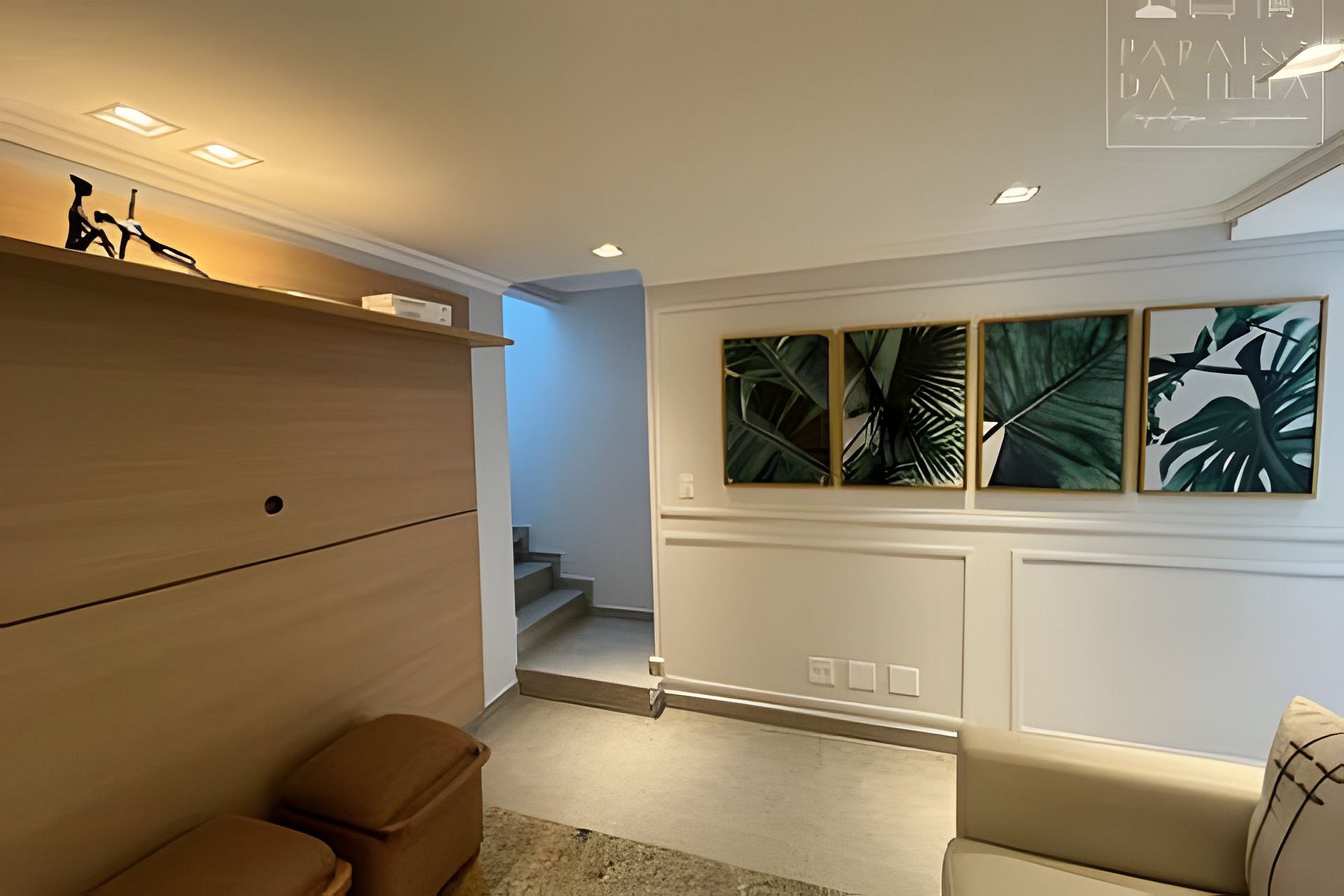 Apartamento Duplex contendo, no piso Superior: Sala de Estar conjugada com a Sala de Jantar, Lavabo, Cozinha totalmente equipada e uma ENORME e COMPLETA Varanda Gourmet. A Varanda é um Show à parte, pois além de totalmente equipada, inclusive com churrasqueira, é ideal para reunir a família e/o amigos para momentos especiais !